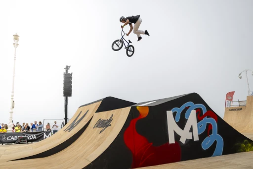 Otra de muy especial es el Backside Air de Danny León: "Iba de camino a la oficina, no sabía ni que había sesión de Mini Ramp. Me paré en un banco a verlo y tirar fotos. Cuando terminé me di cuenta de que mi mujer también estaba allí viendo el espectáculo. Divertido...".
